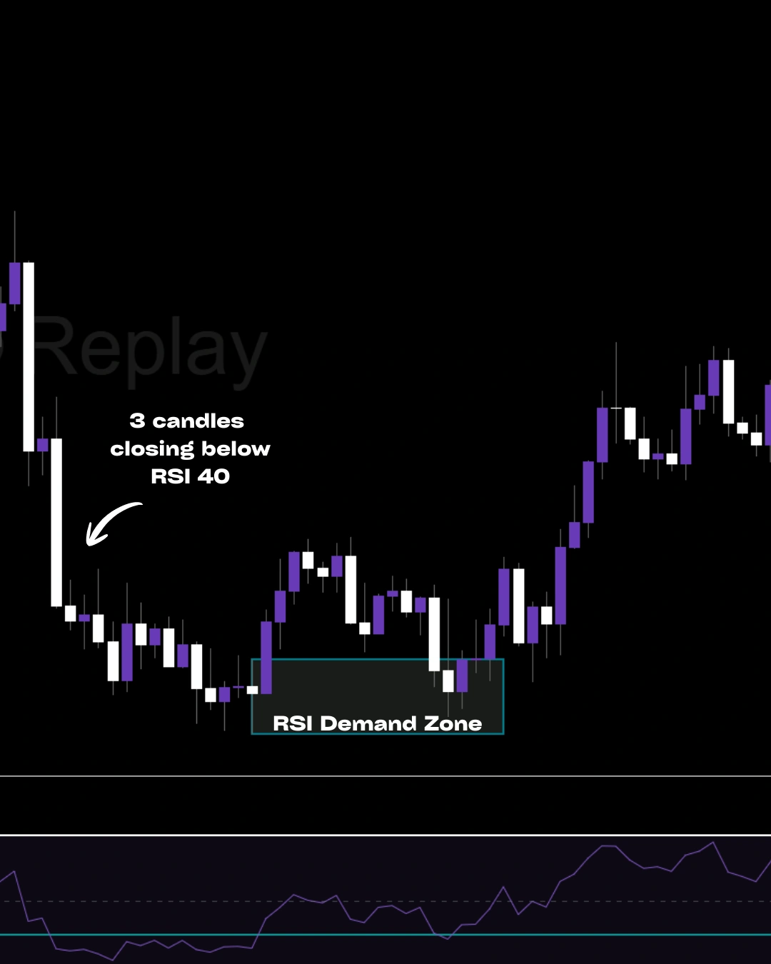 Visually build your strategy using logic blocks — no code required.